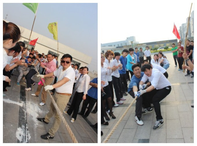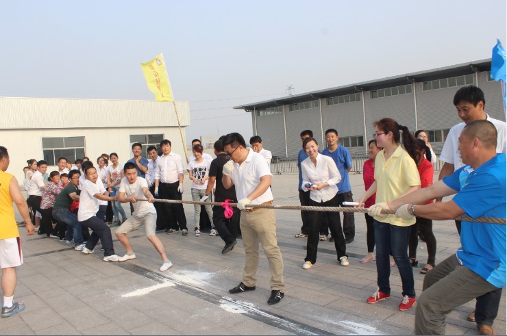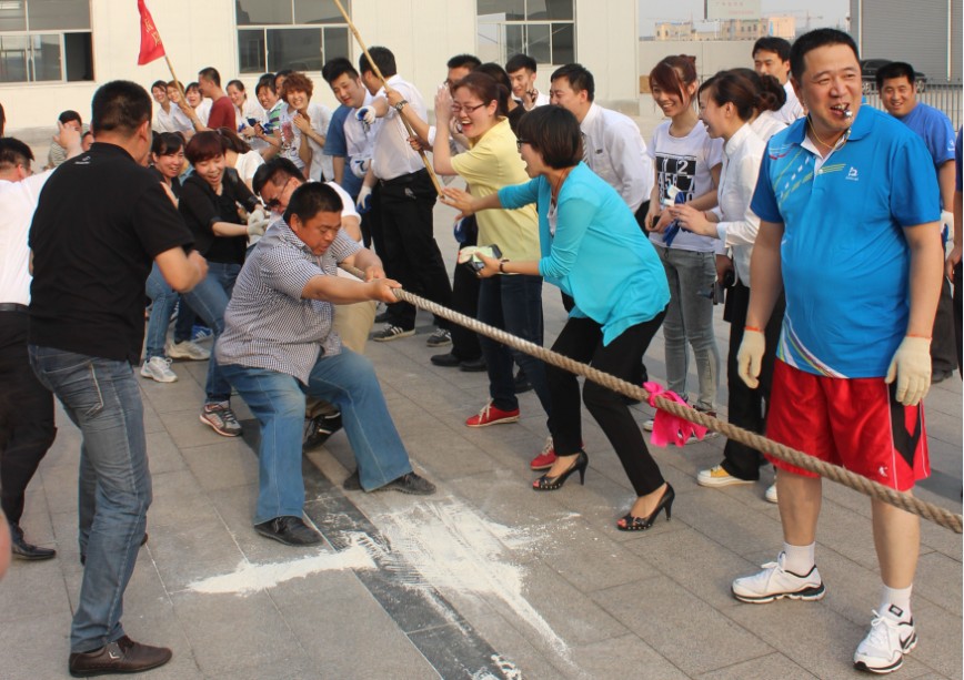 为了丰富员工的文化生活,加强各公司之间的沟通和交流,培养员工积极向上的生活态度,增强团队凝聚力和向心力,由集团行政人事部主办、各子公司行政、人事部协办的“泰岳集团第一节趣味运动会”于5月21日拉开帷幕。本届运动会以“快乐工作,健康生活”为宗旨,比赛项目竞技性十足,趣味性强,与传统运动会不同,趣味运动会将竞技与娱乐相结合,各个项目都强调团队沟通和协作,比如拔河比赛、螃蟹运球、两人三足、抢凳子等,集团总部及各子公司一共五支队伍参加了此次运动会,每个比赛项目都是体力与智慧的角逐,更是团结与协作的完美比拼。 运动会在泰岳集团总经理的致辞中拉开帷幕,各个队伍情绪高涨、气势昂扬,运动员们摩拳擦掌,准备在赛场上一显身手。拔河比赛中,集团董事长、总经理、副总经理等领导亲自上阵,气势压人,参赛队伍众志成城,一鼓作气,观众呐喊加油声震耳欲聋,场面紧张激烈。在接下来的螃蟹运球、两人三足、抢板凳等多个项目中,大家或团结一致、齐心协力,