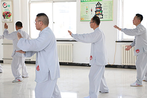 “内练一口气,外练筋骨皮。”来,大家一起和岳董全身放松,心神专一,平心静气地自然呼吸,慢慢的出拳,放拳,有刚有柔,有快有慢,呼吸也应和动作相配合。