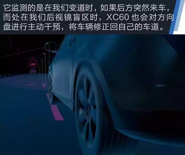 而XC60配备了BLIS增强版盲点信息系统,通过雷达传感器,来监测到我们后视镜看不到的盲区,从而告知我们是否有危险存在。