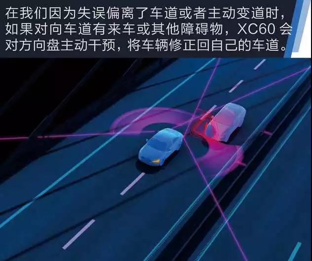 除了Pilot Assist自动驾驶辅助系统、City Safety城市安全系统外,全新XC60还配备了Intellisafe全方位安全系统,主要是针对后方来车和左右两侧盲区来车产生的潜在危险,进行提前预防和规避。