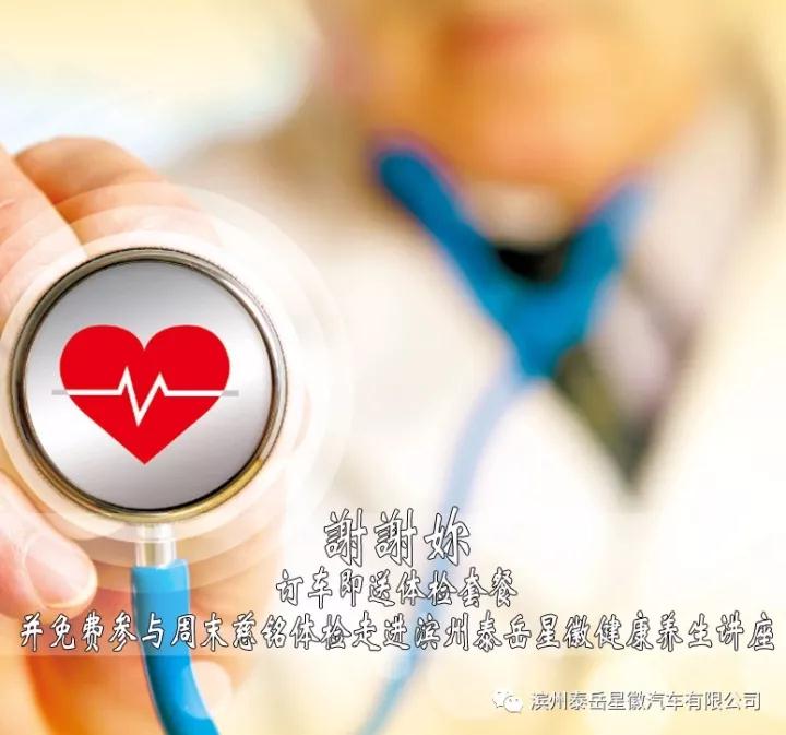 活动期间,订车前五名即送体检套餐,还可免费参与周末慈铭体检走进滨州泰岳星徽冬季养生健康讲座