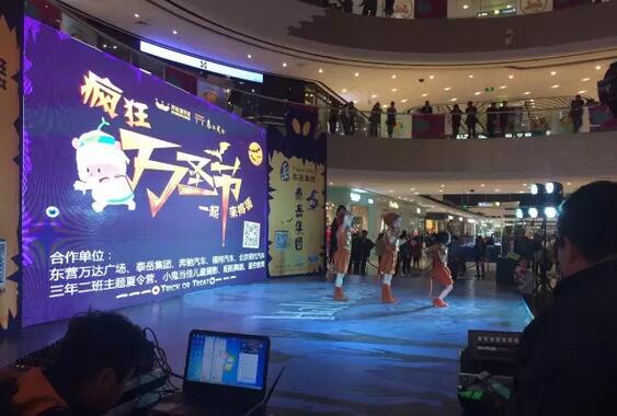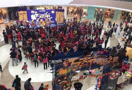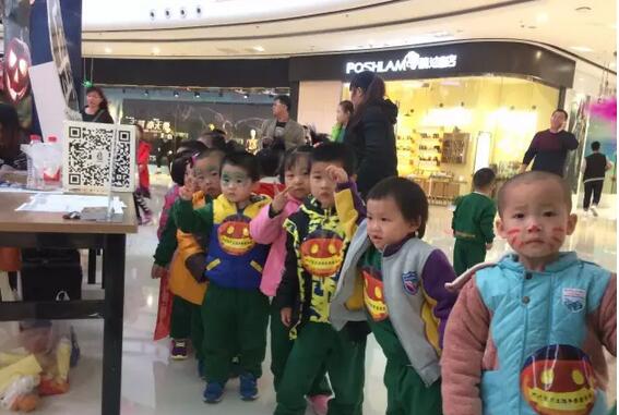 小朋友们戴上千奇百怪的面具,提上南瓜灯,前往万达广场的商户家前,威吓般地喊着:“不给糖,就捣乱”,最后比一比,看一看谁讨的糖最多~