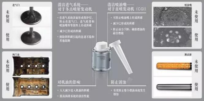 初次使用:新车第一次加注燃油时即开始使用,有益于磨合期发动机的保养,并且使发动机从全新状态起一直保持清洁。