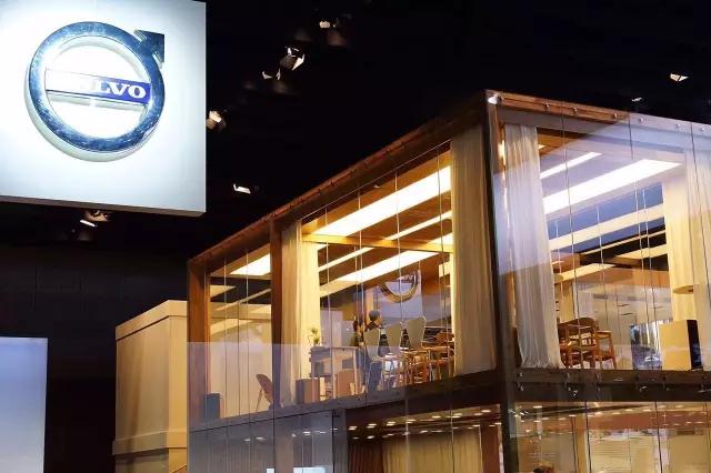 整个沃尔沃汽车展台秉承斯堪的纳维亚美学理念,充满北欧简约风格的温馨陈设,原木色实木桌椅和地板,以及仿造湖边石头的现代元素沙发,都能让你感受到沃尔沃汽车“崇尚自然”的北欧生活理念。