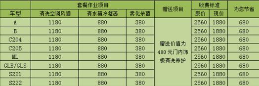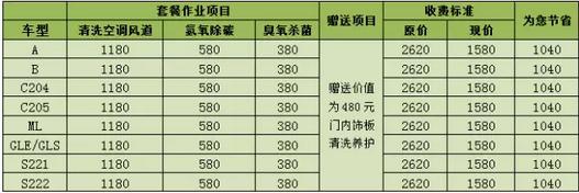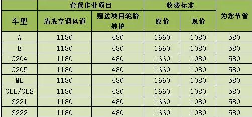 *其余列表中未标注的车型空调清洗套餐即享5.5折